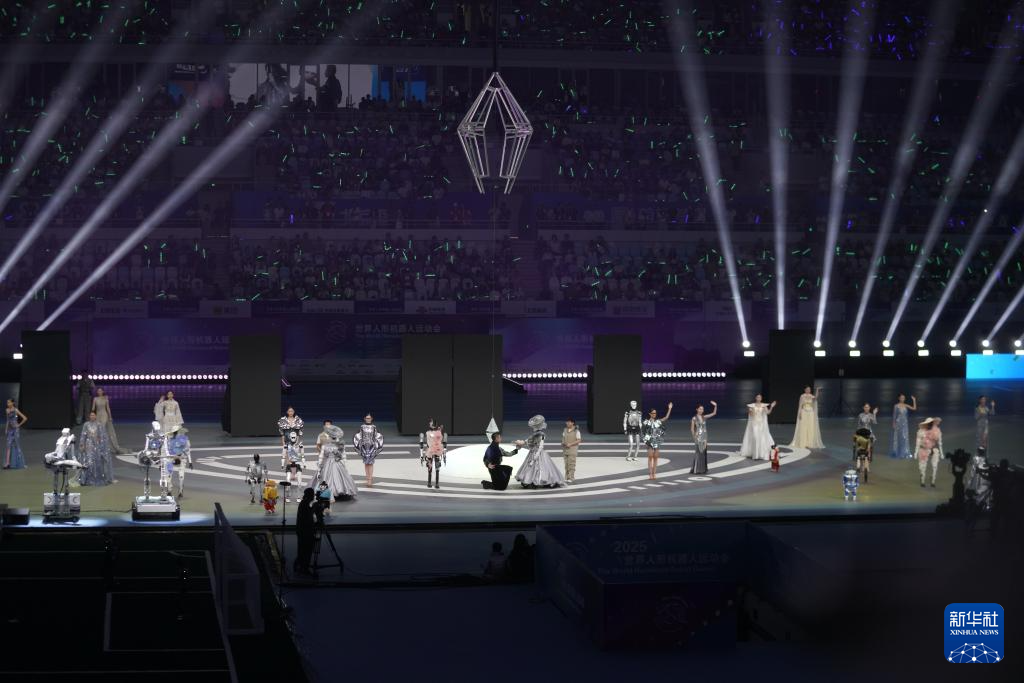 ??歌舞節(jié)目《歡迎來到碳基生命的世界》中,人類舞者與機(jī)器人以流暢協(xié)作演繹“碳基與硅基的對話”;服飾走秀節(jié)目《天工霓裳》則將非遺技藝與未來設(shè)計(jì)完美融合……14日的開幕式上,超百支戰(zhàn)隊(duì)閃耀“冰絲帶”,各式機(jī)甲競展風(fēng)采,機(jī)器人街舞、戲曲輪番登場,更與專業(yè)街舞團(tuán)聯(lián)袂獻(xiàn)藝,生動演繹科技與人類文明的碰撞交融。隨著舞臺中央的“智芯”裝置——鑲嵌藍(lán)色晶體芯片的金屬四棱錐被點(diǎn)亮,2025世界人形機(jī)器人運(yùn)動會正式啟動。